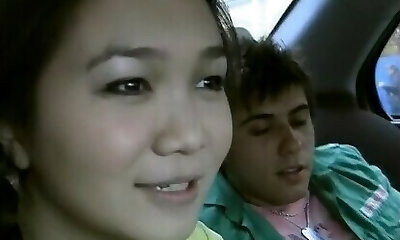 Asian girl gets banged in the van