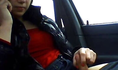 Ugly fat bitch jerks off dick in the car