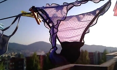 Brassy blonde strips to wank in vintage panties nylon stilettos
