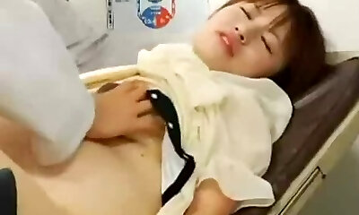 Noisy oriental schoolgirl getting fingered by her doctor on the medical bed