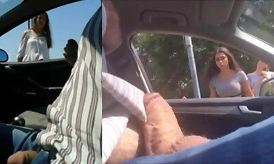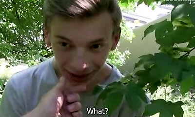 Kinky teen gets her gash stretched outdoor and gives blowjob
