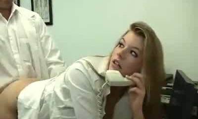 Light-haired secretary gets her big butt spanked by boss