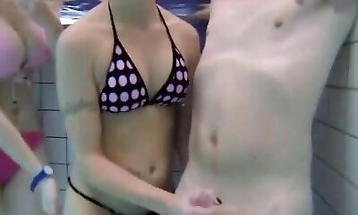Asian girl with cock-squeezing bod Airi Morisaki swims in the pool